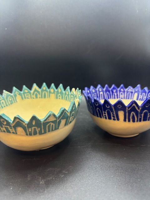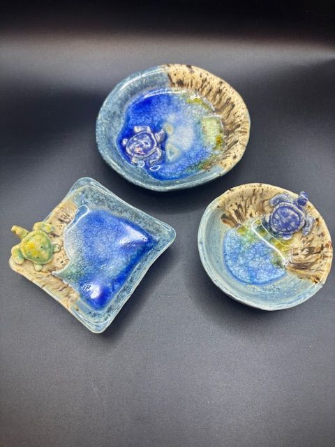 Individual hand-crafted Wave Bowls with exquiste glazing designs.